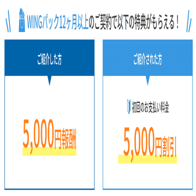 コノハウィングでは、紹介された人がWINGパックをご契約で最大5000円割引になるキャンペーンを実施中です^_^